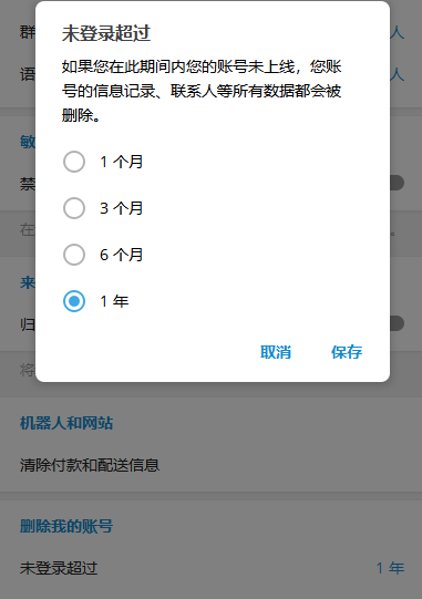 我们知道tg有个功能就是如果你可以设置你的tg账号如果隔一段时间不登录的话,那么超过这个日期你没有登录,Telegram官方就会自动删除也就是注销你这个账号。
